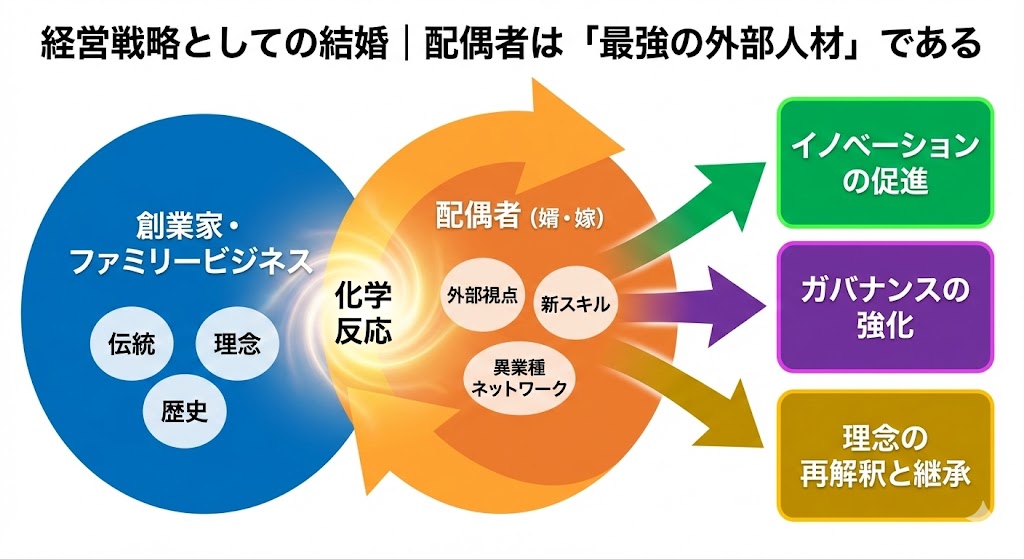 配偶者は、創業家のDNAを守りつつ、新しい風を吹き込むイノベーターになり得るのです。